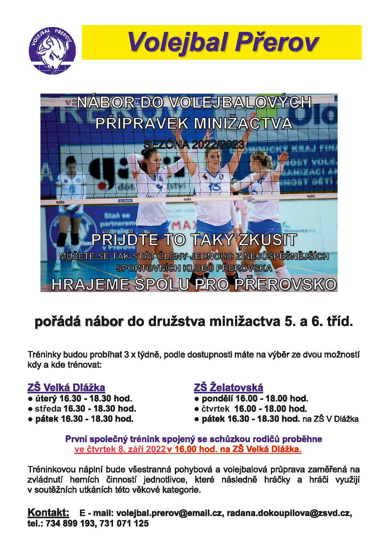 Těšíme se na Vás na prvním společném tréninku ve čtvrtek 8. září 2022 v 16:00 v tělocvičně ZŠ Velká Dlážka.